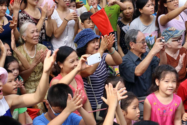 Xung quanh bờ hồ Hoàn Kiếm rất đông người dân đã chờ sẵn. Sau đại lễ 1.000 năm Thăng Long - Hà Nội năm 2010, đến nay người dân thủ đô mới lại được chứng kiến diễu binh. Dù quy mô đợt này không như trước, không có sự tham gia của vũ khí trang bị, nhưng người dân vẫn háo hức tham gia.