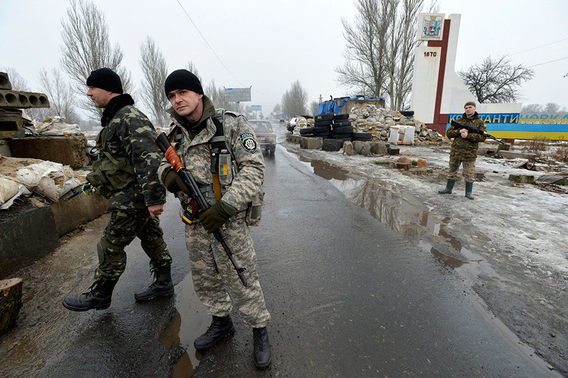 Quân đội Ukraine trên một chốt kiểm soát ở ngoại vi Konatantinovka