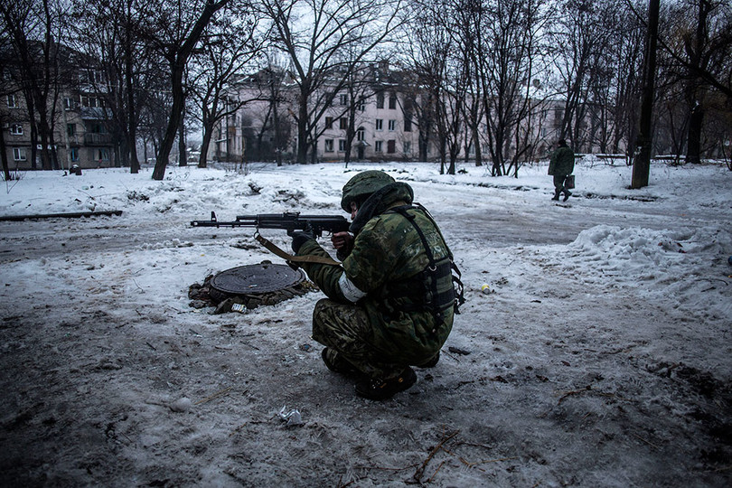 Một binh sĩ dân quân trong khu kiev 3 km cách sân bay Donesk.