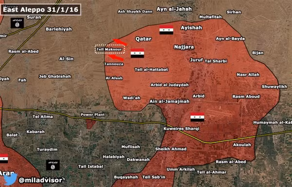 Theo phóng viên chiến trường Arab Source trong khu vực sân bay Kuweires, các lực lượng vũ trang Syria đã bắt đầu pháo kích bằng pháo phản lực và súng cối vào khu vực phòng ngự của IS trong Nhà máy nhiệt điện Aleppo, các đợt pháo kích này có nhiệm vụ dọn đường tấn công và yểm trợ cho lực lượng Tigers tiến về hướng quận Công nghiệp Sheikh Najjar.