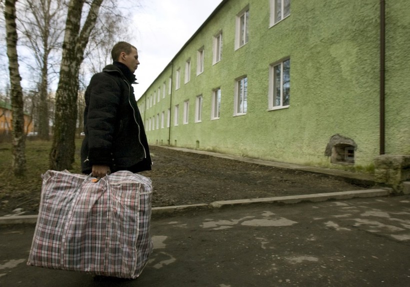 Một người đàn ông đến tại một nhà nghỉ cho những người đến từ Liên Xô cũ tại căn cứ không quân cũ của Đức quốc xã ở Kaliningrad ngày 19 tháng 2 năm 2008.