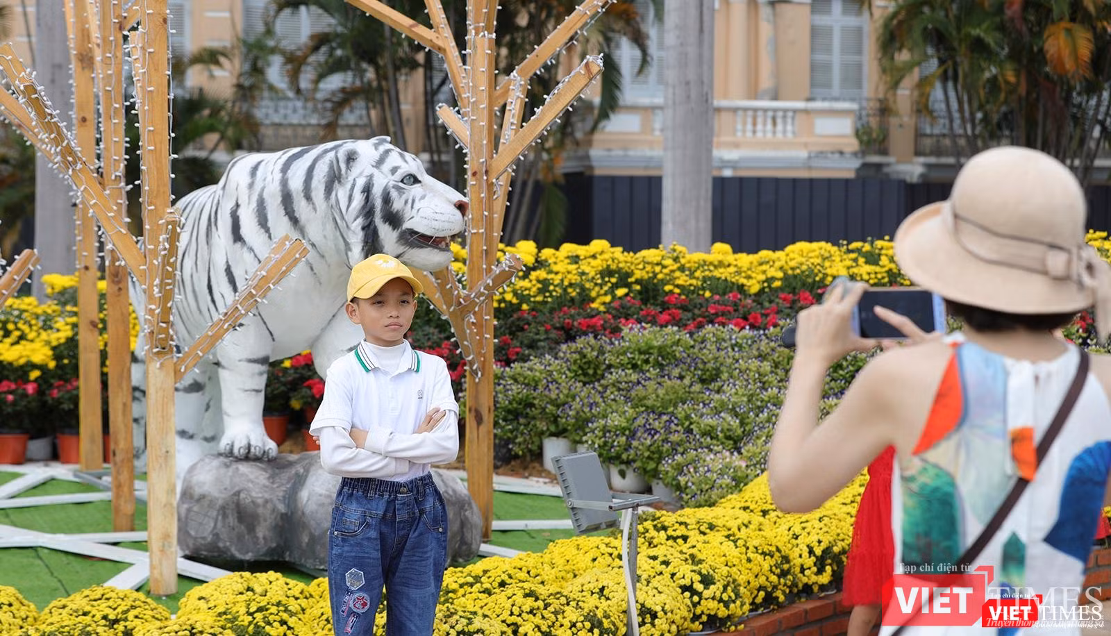 Bên cạnh các tượng linh vật còn có những hình ảnh cách điệu về hổ con tạo điểm nhấn thưởng lãm cho người dân