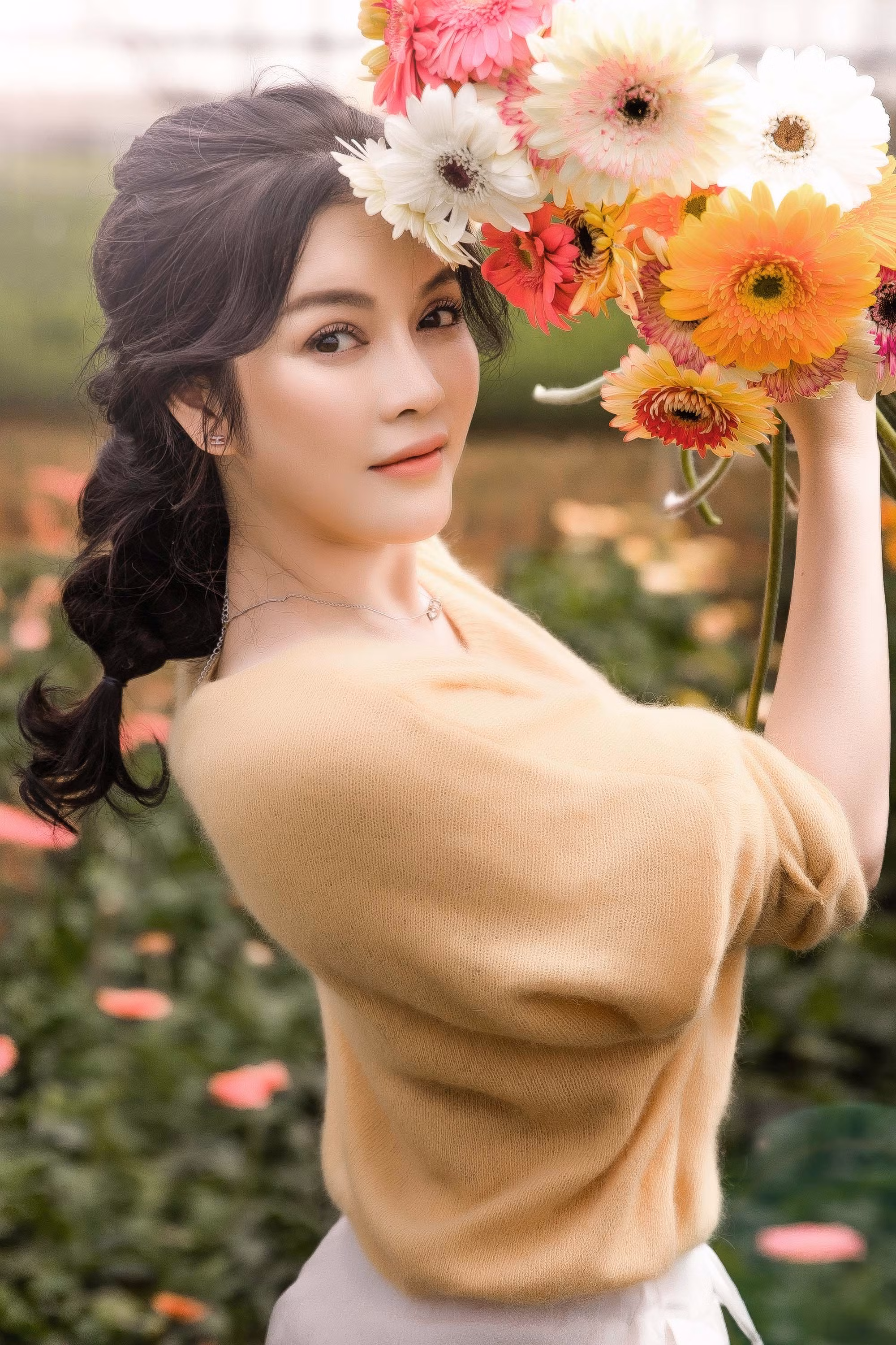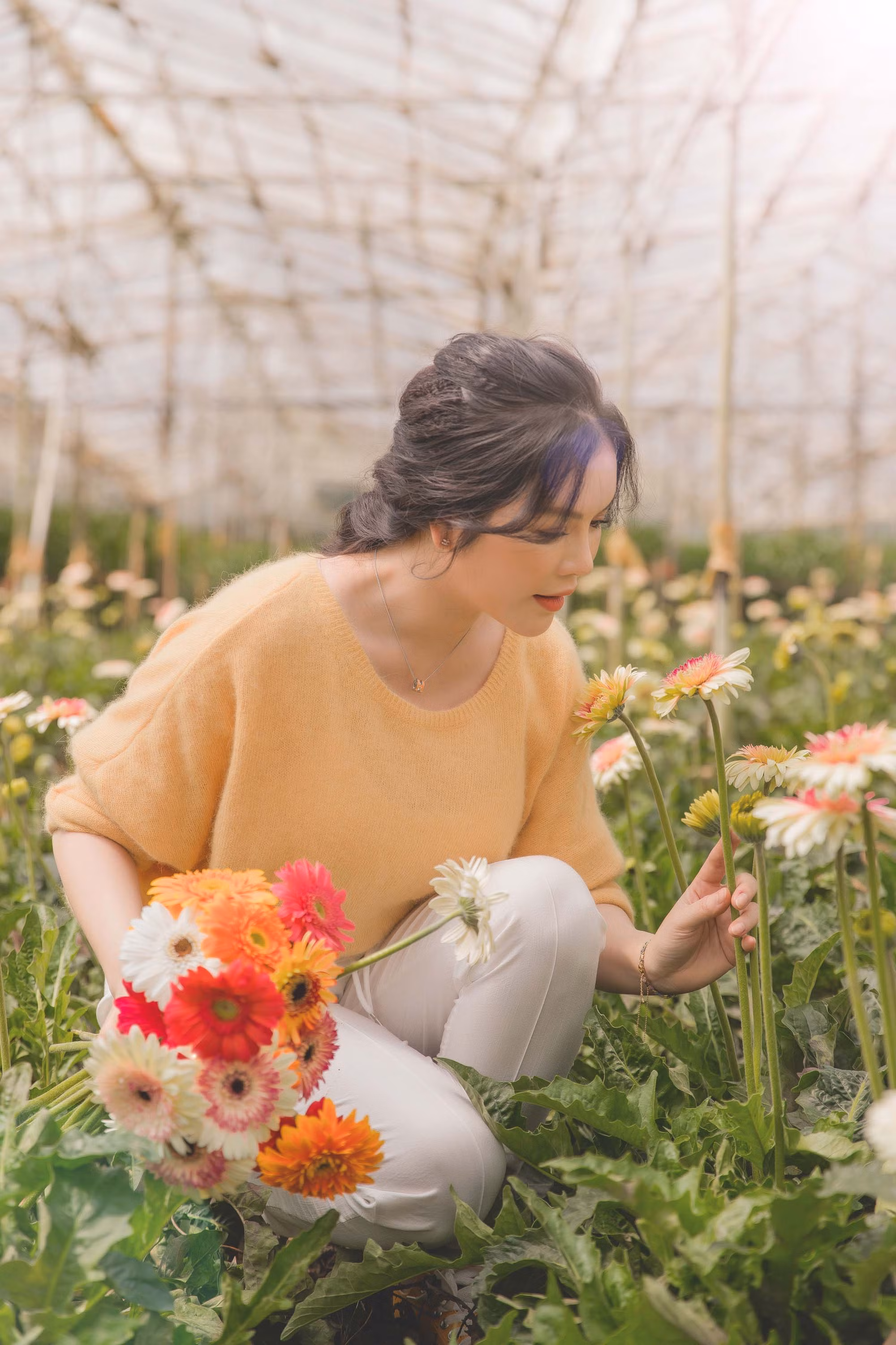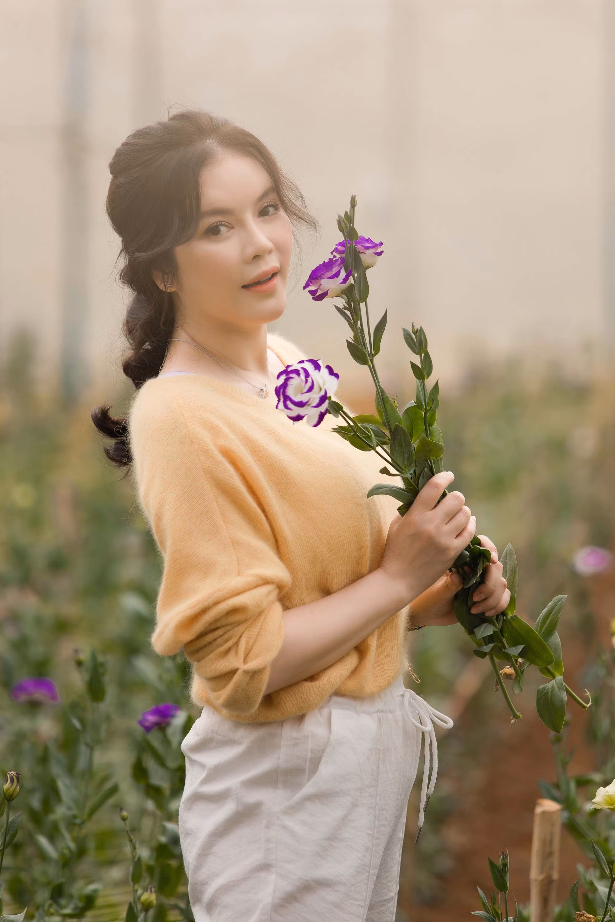 Lý Nhã Kỳ đang có mặt tại Đà Lạt, tất bật chăm sóc cánh đồng hoa ở nghỉ dưỡng. Khu resort với không gian thanh bình và thoáng đãng giữa vùng đất mơ mộng được Lãnh sự danh dự Romania tại TP.HCM tự tay chăm chút.