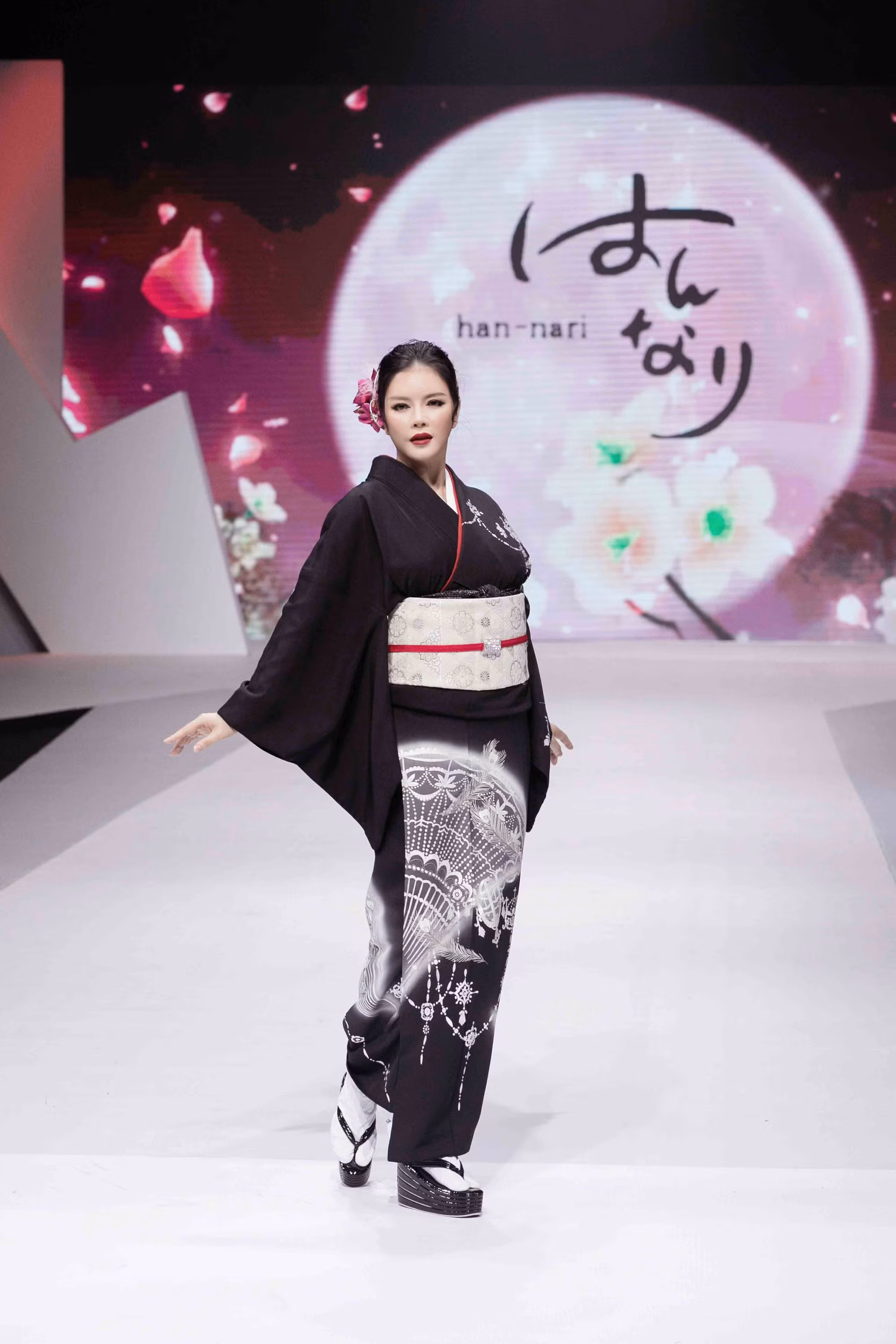 Người đẹp Vũng Tàu bày tỏ thích thú khi được mặc lên người chiếc áo kimono truyền thống Nhật Bản cùng thắt lưng obi được làm rất công phu, tỉ mỉ. Cô tự tin catwalk dù hiếm khi trình diễn thời trang.