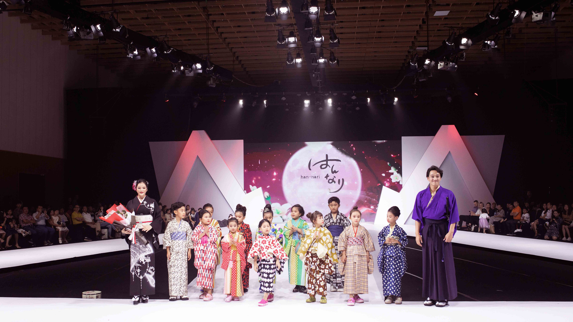 Nữ diễn viên dẫn đoàn 12 mẫu nhí trình diễn Kimono - quốc phục xứ mặt trời mọc. Năm nay, chương trình đã chọn 20 BST từ các nhà thiết kế của 12 quốc gia, vùng lãnh thổ châu Á: Nhật Bản, Hàn Quốc, Trung Quốc, Việt Nam... trình diễn trong hai đêm 22 và 23/11.