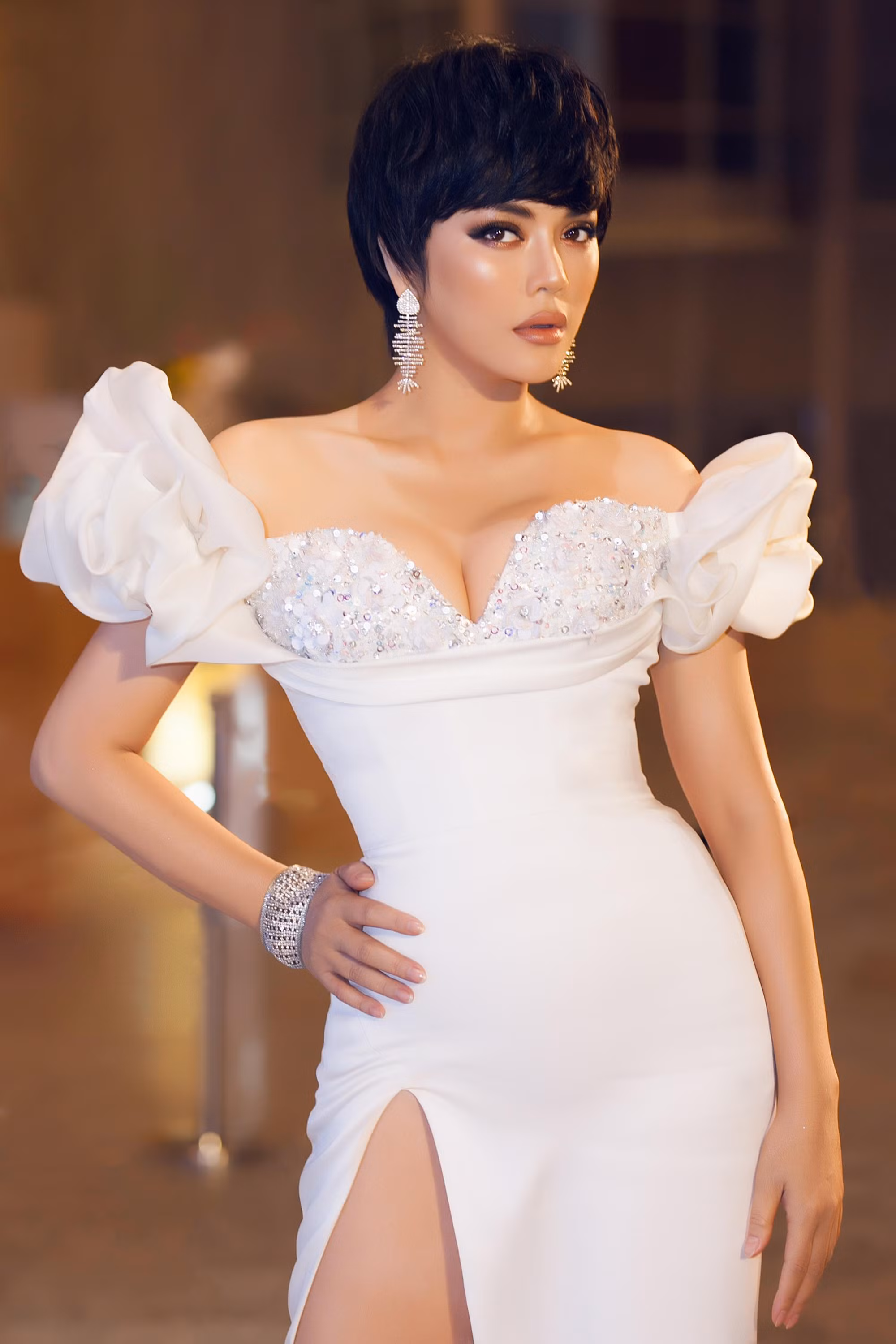 Xuất hiện khá muộn một sự kiện thời trang gần đây, Lãnh sự danh dự Rumani - Lý Nhã Kỳ gây bất ngờ với tạo hình của quý cô thập niên 40 thanh lịch nhưng không kém phần gợi cảm, khoe vòng một hoàn hảo.