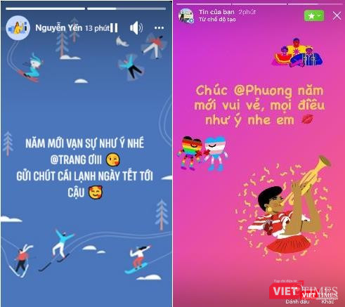 Mỗi người bạn, người thân trong gia đình có một tính cách, một sở thích riêng. Hãy thử tạo lời chúc thông qua Story (tin) trên Facebook và Instagram cho từng người và tag (gắn thẻ) họ vào tin đó để bắt đầu trò chuyện đầu năm.