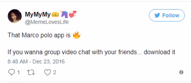 Bạn biết gì về siêu phẩm mới mang đậm phong cách 2017 dùng để trò chuyện, chát chít qua video? Các bạn đoán đó là ứng dụng nào, Viber, Zalo, WeChat? Không đâu, đó chính là "lính mới" gia nhập thế giới ứng dụng gọi thoại, nhắn tin video miễn phí - Macro Polo. Marco Polo tự quảng cáo nó là một "video walkie talkie", một ứng dụng trò chuyện video cho phép bạn gửi nhanh tin nhắn qua lại với bạn bè. Giống như Snapchat, Marco Polo truyền tải tin nhắn chỉ trong vài giây. Tuy nhiên, có một điểm khác là ứng dụng hỗ trợ lưu lại video do đó bạn có thể có cuộc trò chuyện liên tục với bạn bè hoặc một nhóm mà không sợ bị gián đoạn.