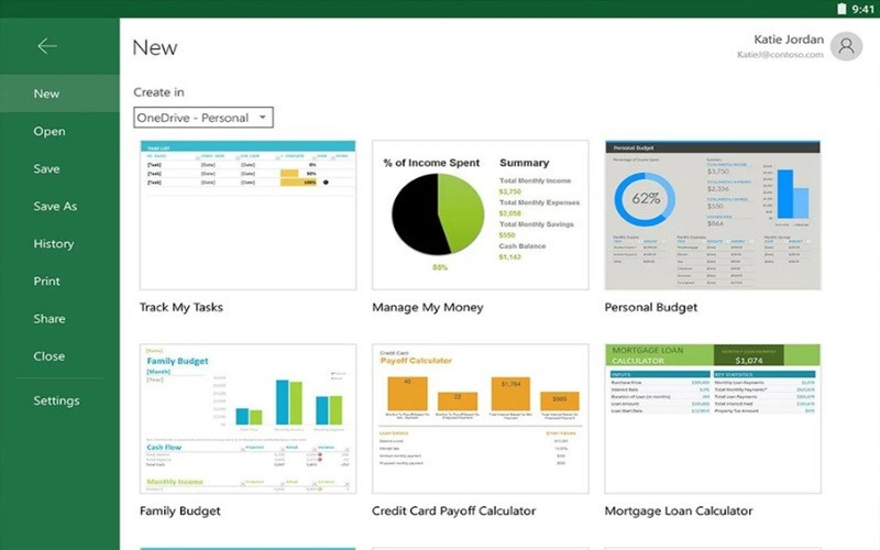Xem các tài liệu sẵn có: Trong lần đăng nhập đầu tiên, điện thoại của bạn sẽ được tự động kết nối Excel với Tài khoản OneDrive của bạn. Nhấn “Open” và tìm trong ổ lưu trữ, bạn sẽ thấy tất cả những tệp đã lưu từ trước ở trên đó. Nhấn “This device” để xem những tài liệu mà bạn lưu trên thiết bị (nhưng đây là lần đầu bạn sử dụng Excel trên máy nên có lẽ chưa có tài liệu nào).