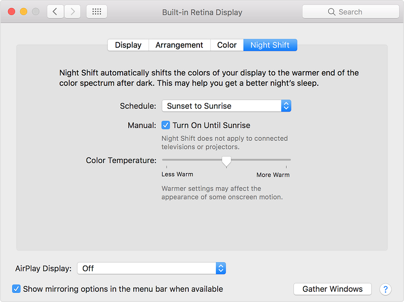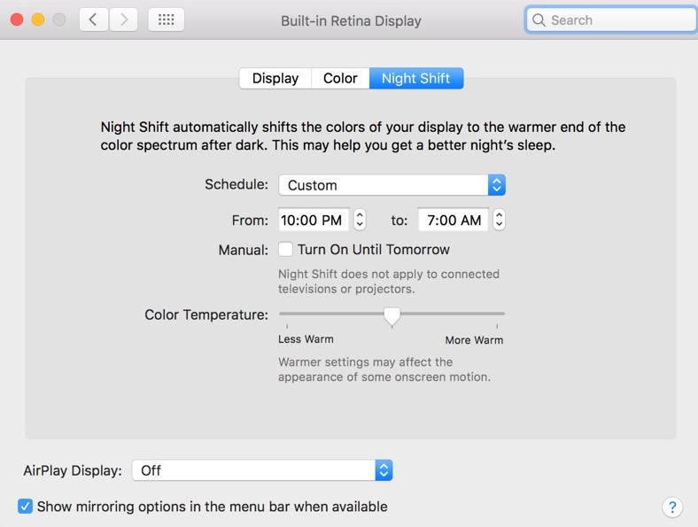Sau khi hoàn tất cập nhật, bạn có thể kích hoạt Night Shift thông qua phần Displays của System Preferences.