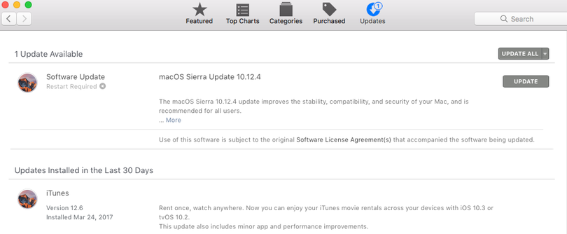 Bạn có thể cài đặt bản cập nhật này miễn phí miễn là đang sử dụng macOS Sierra. Bạn có thể tìm thấy nó trong phần Software Update của Cửa hàng Ứng dụng Mac (Mac App Store).