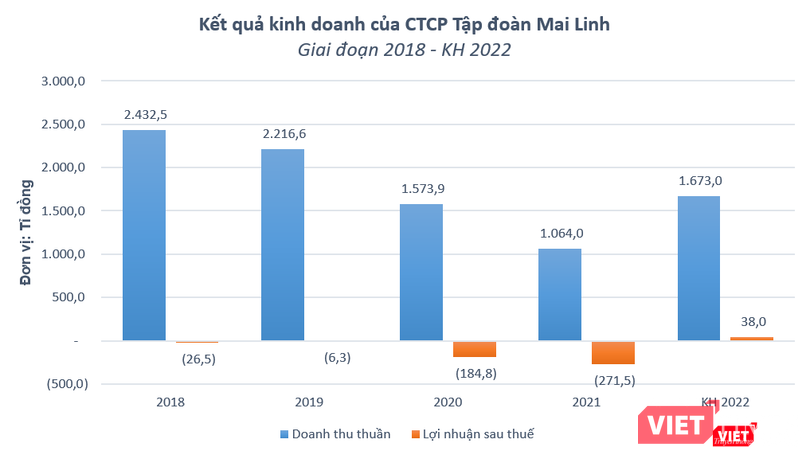 Báo cáo thường niên của Mai Linh Corp cho biết, năm 2022, công ty đặt mục tiêu doanh thu thuần đạt 1.673 tỉ đồng và lợi nhuận sau thuế đạt 38 tỉ đồng.