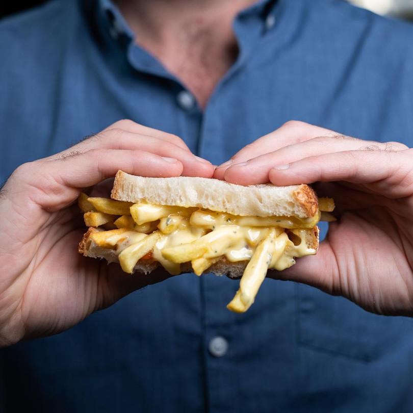 Ở phương Tây, khoai tây chiên là một món ăn phổ biến với bánh mì kẹp. Một chiếc bánh sandwich của Anh cắt giữa và kẹp khoai tây chiên ở giữa 2 lát bánh mì. Đôi khi, người ta có thể thêm các loại nước sốt khác.
