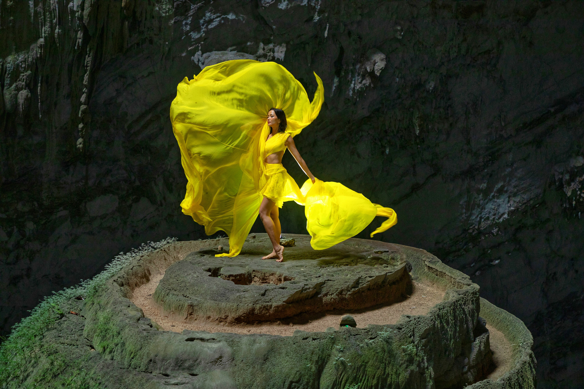 Giữa khung cảnh thiên nhiên hùng vĩ và tráng lệ, Hoa hậu H’Hen Niê thực hiện những cú tung váy, xoay người đầy kiêu hãnh, cảm nhận vẻ đẹp say đắm lòng người của hang Sơn Đoòng. H’Hen Niê tâm sự: “Lúc đó Hen thấy mình nhỏ bé lắm, cứ như một nàng bướm vàng lạc lối chốn thần tiên”.