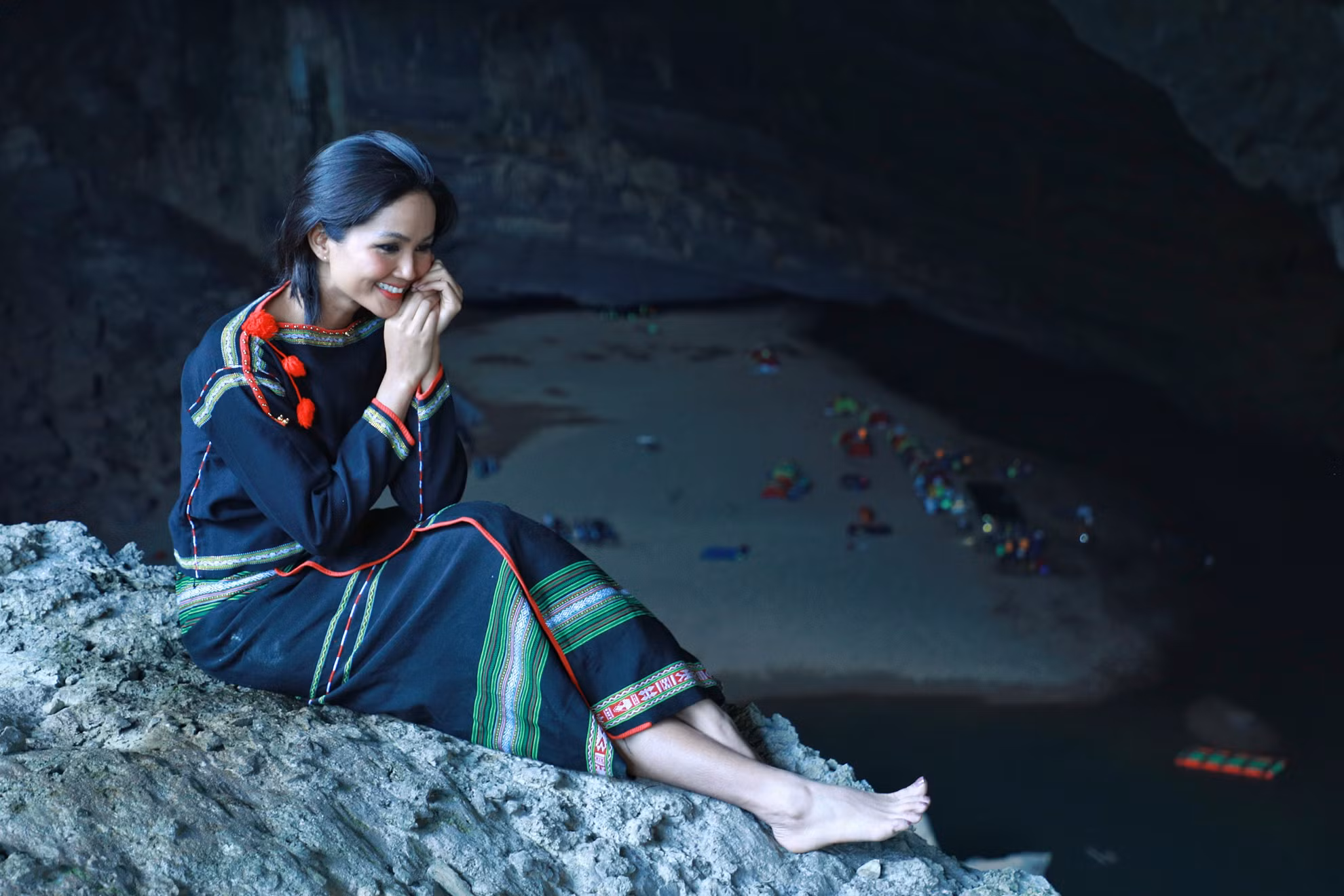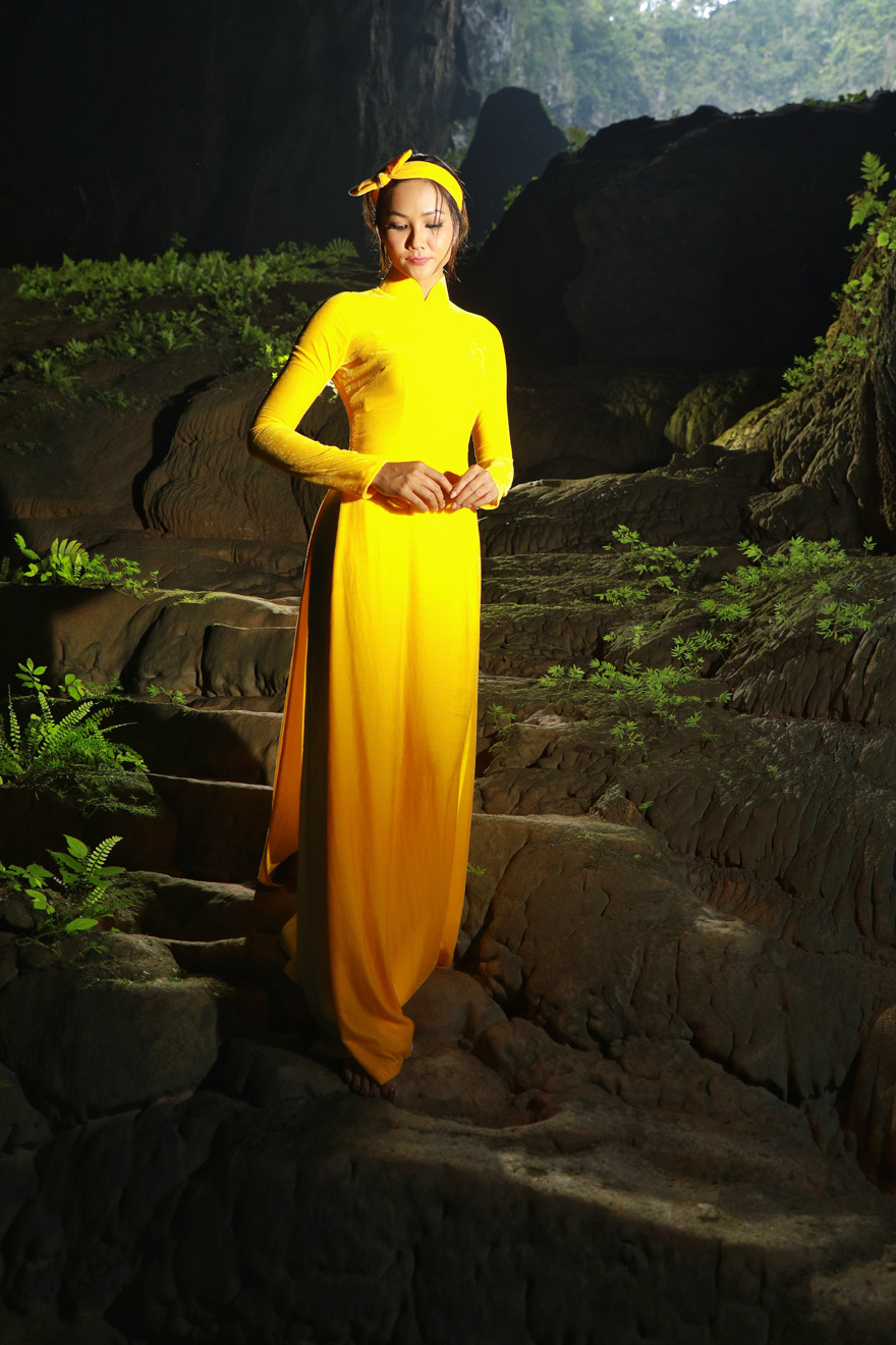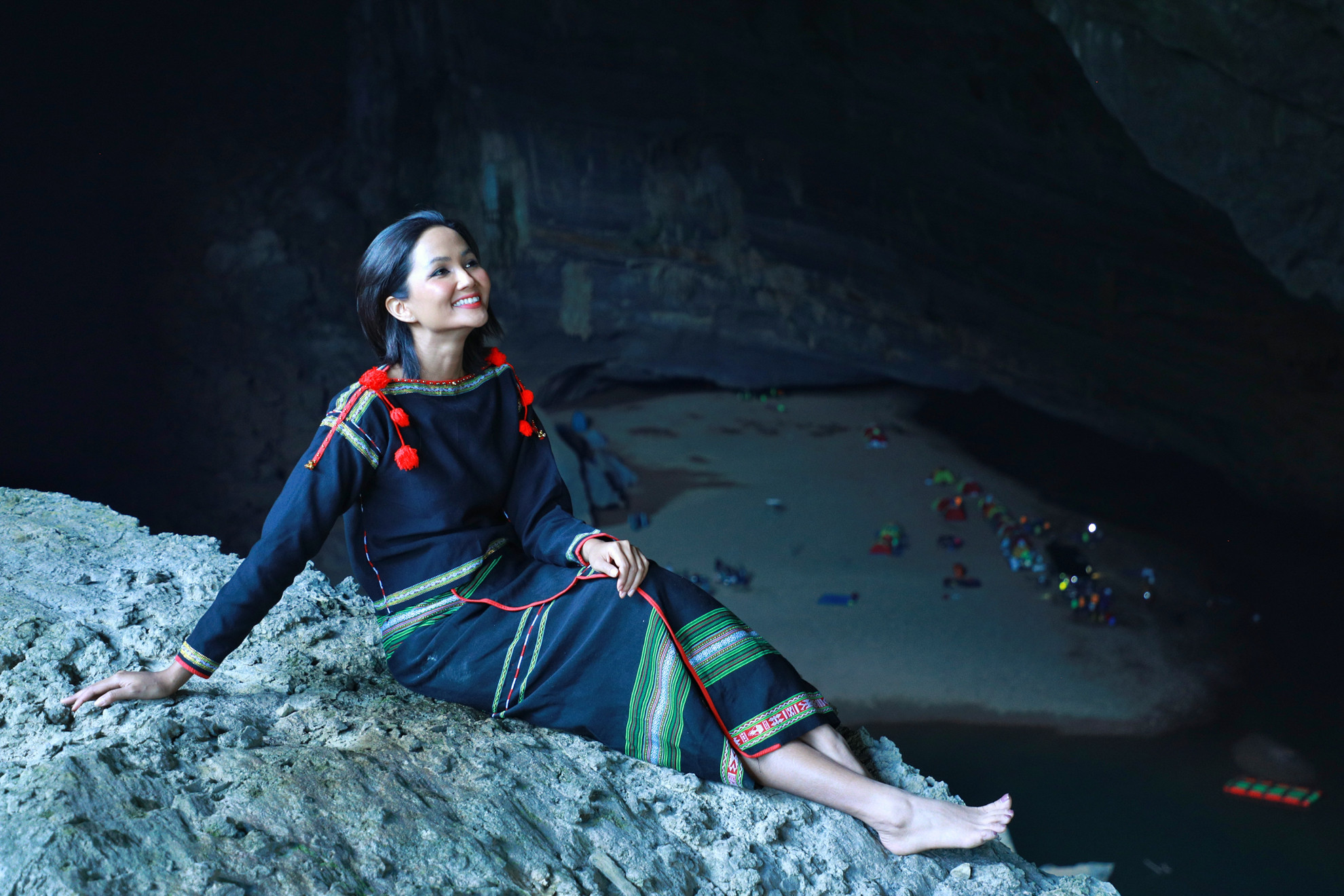 | Hoa hậu H' Hen Niê trong áo dài Thuận Việt tại hang Sơn Đoòng |