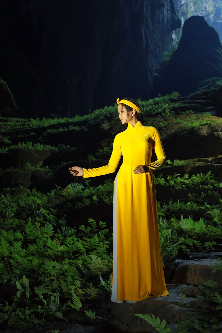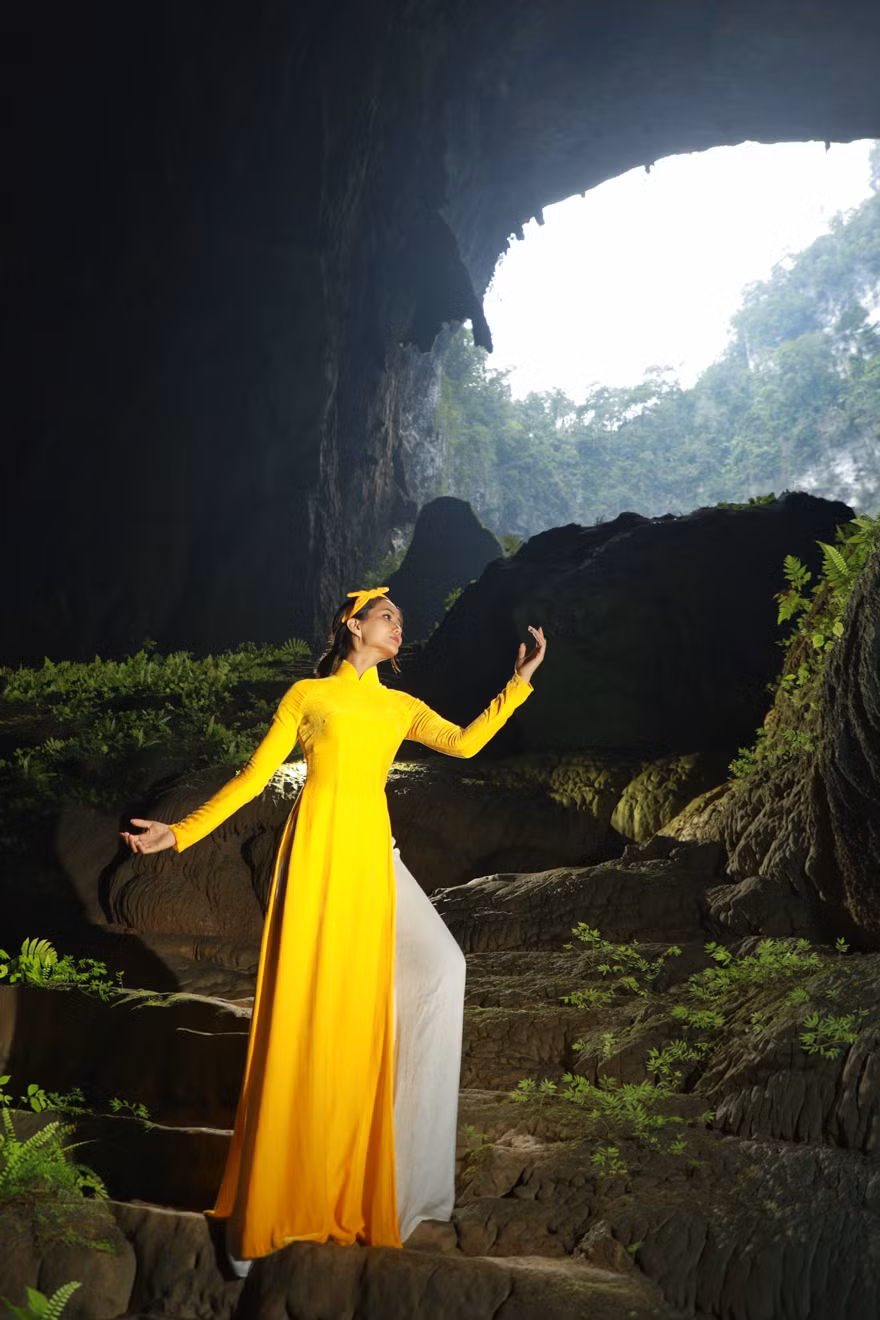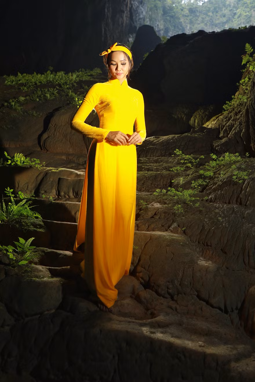 | Hoa hậu H' Hen Niê trong áo dài Thuận Việt tại hang Sơn Đoòng |