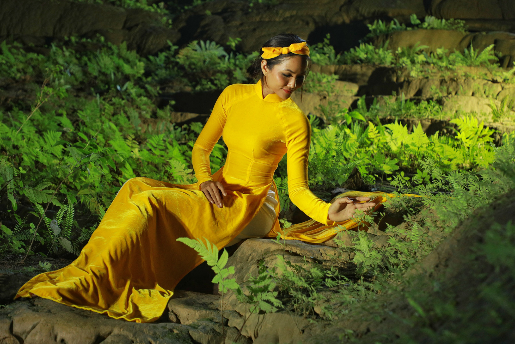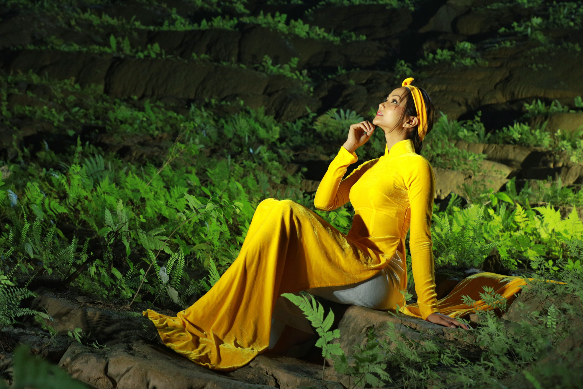 Hoa hậu H’Hen Niê cũng không quên thực hiện một bộ ảnh áo dài nơi Vườn địa đàng này. Chọn bộ áo dài vàng được nhà thiết kế Thuận Việt ưu ái dành riêng cho mình. Hoa hậu H’Hen Niê hóa thân thành người phụ nữ Việt Nam duyên dáng, e ấp hòa vào thiên nhiên.