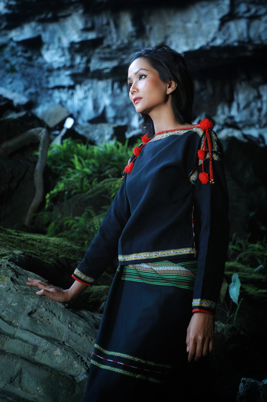 Hình ảnh H’Hen Niê trong trang phục truyền thống Êđê được chụp tại Hang Én – hang lớn thứ 3 thế giới dài khoảng 1,6km, có trần hang cao đến 100m, từng được chọn là bối cảnh của bộ phim nổi tiếng Pan (2015). Di chuyển cùng đoàn còn có một cô gái Êđê khác, tên H’Annetta Buôn Yă.