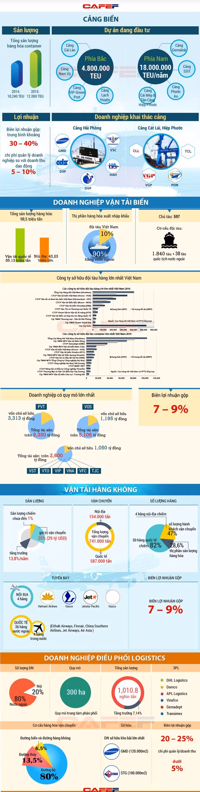 Theo thống kê, hiện có khoảng 1200 doanh nghiệp logistics đang hoạt động tại Việt Nam. Thời gian hoạt động trung bình của DN là 5 năm, với 80% doanh nghiệp có vốn đăng ký chỉ từ 1 - 1,5 tỷ đồng, chủ yếu là doanh nghiệp trong nước.