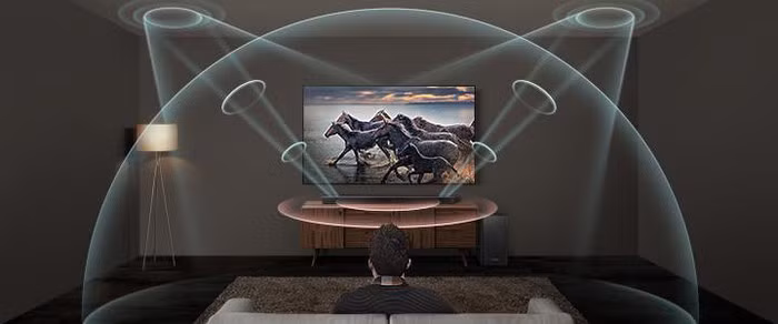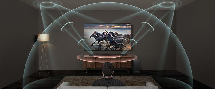 Là bộ đôi được trang bị những công nghệ “ăn ý” với nhau và được điều chỉnh bởi hệ thống thông minh, bộ đôi loa thanh Harman Kardon và TV QLED 8K cho phép bạn thưởng thức những thước phim Hollywwod, bản nhạc chất tại nhà như rạp mà không cần tinh chỉnh nhiều. Bên cạnh thanh loa chính được đặt cạnh TV, bạn chỉ cần đặt loa siêu trầm và các loa vệ tinh ở những vị trí phù hợp, hệ thống sẽ tự phân tích, tạo ra các hiệu ứng âm thanh vòm chuẩn 7.1.4 kênh nhờ hệ thống loa up-firing (loa hướng trần), side-firing (loa bên tích hợp), kết hợp công nghệ Dolby Atmos và DTS: X.
