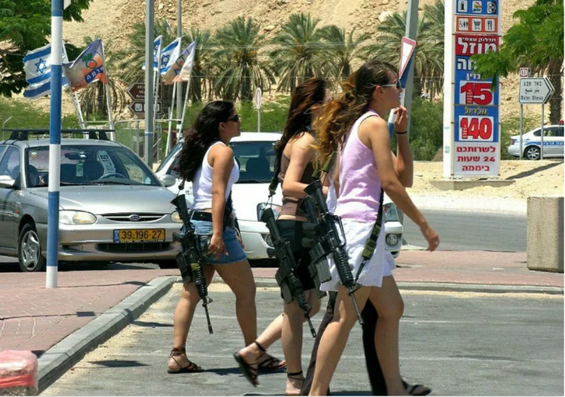 Có lẽ trong phần lớn ấn tượng của mọi người, Mỹ là nơi kiểm soát súng lỏng lẻo nhất trong tất cả các quốc gia trên thế giới, nhưng mọi người thường bỏ qua tỷ lệ mang súng của người Israel. Ở hầu hết mọi nơi trên đất nước này, người ta đều có thể thấy người Israel với súng trường sau lưng “lắc lư đi dạo phố”, trong số đó có rất nhiều phụ nữ trẻ xinh đẹp.