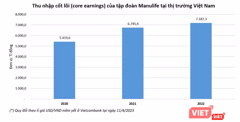 Đáng chú ý, trong các năm 2020 và 2021, dù Manulife Việt Nam báo lỗ riêng lẻ, song công ty mẹ của nó có trụ sở tại Canada vẫn ghi nhận thu nhập lõi (core earnings) từ hoạt động tại Việt Nam là số dương, lần lượt đạt 233 triệu USD và 290 triệu USD (tương ứng khoảng 5.419,6tỉ đồng và 6.745,4 tỉ đồng). Riêng trong năm 2022, công ty này ghi nhận khoản thu nhập lõi tại thị trường Việt Nam lên tới 309 triệu USD (khoảng 7.187,3 tỉ đồng) - vượt trội so với các thị trường Singapore, Trung Quốc.