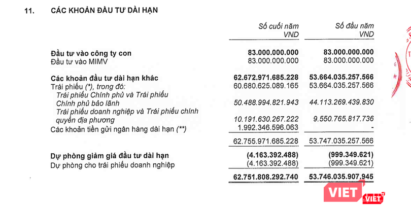 Trong khi đó, danh mục đầu tư dài hạn của Manulife Việt Nam chủ yếu là các trái phiếu chính phủ và trái phiếu chính phủ bảo lãnh, đạt 50.488,9 tỉ đồng (tăng 6.375,7 tỉ đồng so với đầu năm).