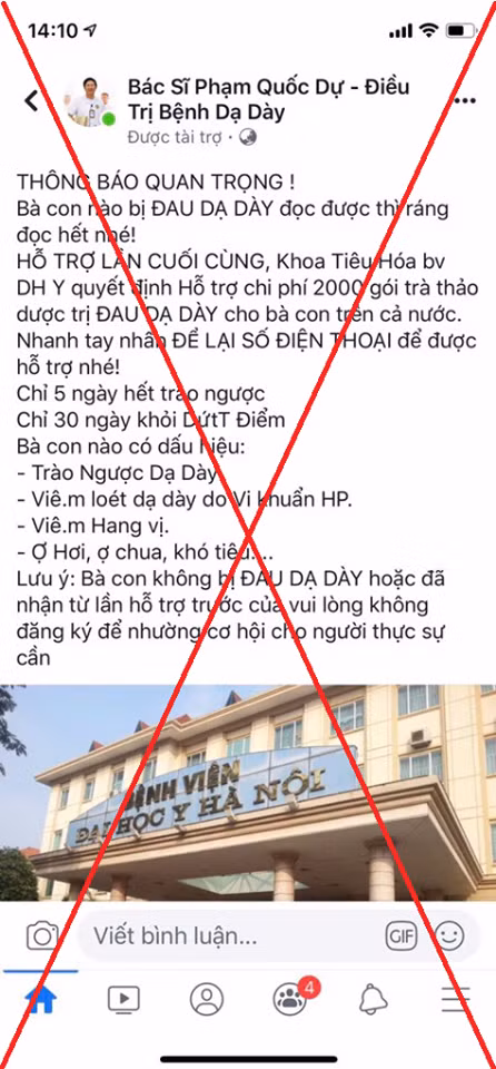 Không chỉ vậy, họ còn lấy hình ảnh, thương hiệu của Bệnh viện Đại học Y Hà Nội để quảng cáo các phòng khám cung cấp các dịch vụ khám, xét nghiệm tại nhà, song thực tế lại không phải do Bệnh viện Đại học Y Hà Nội cung cấp.