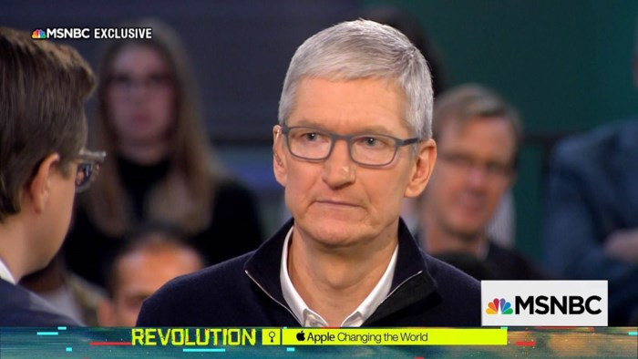 Tháng trước, người ta đã hỏi ý kiến của Tim Cook đối với vụ việc do Facebook gây ra. Sau đó, trong một bài phỏng vấn với Recode và MSNBC, Tim Cook cho biết ông "sẽ không rơi vào tình cảnh này" nếu đặt mình vào trường hợp của Zuckerberg. Trong khi Facebook kiếm tiền bằng cách bán các quảng cáo hướng mục tiêu dựa trên dữ liệu người dùng, thì lợi nhuận của Apple lại đến từ các sản phẩm phần cứng như iPhone, iPad và Mac.