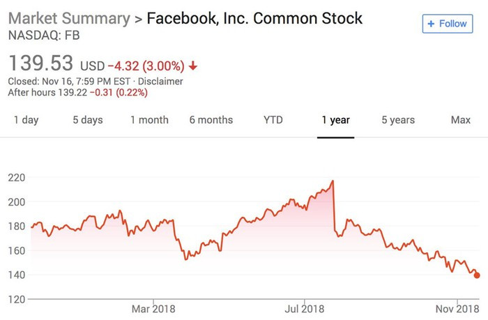 Sau khi bài viết của NY Times được đăng tải, cổ phiếu Facebook đã mất giá liên tục, xuống mức thấp nhất trong 2 năm qua.