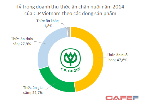 Còn với C.P Vietnam, doanh thu năm 2014 đạt 2,07 tỷ USD, trong đó riêng mảng thức ăn chăn nuôi đạt 867 triệu USD. Phần còn lại đến từ chăn nuôi và chế biến thực phẩm với 1,2 tỷ USD.