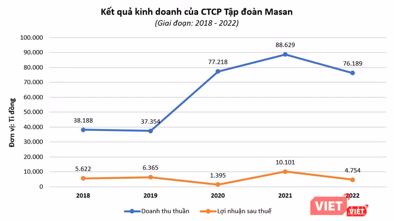 Năm 2022, MSN ghi nhận doanh thu thuần đạt 76.189 tỉ đồng và lợi nhuận sau thuế 4.754 tỉ đồng, giảm lần lượt 14% và 52,9% so với năm 2021. Nguyên nhân chủ yếu là do tập đoàn không còn ghi nhận lợi nhuận từ mảng thức ăn chăn nuôi.