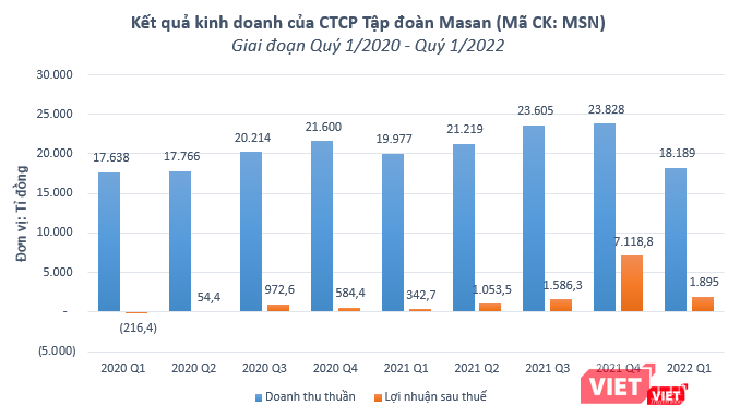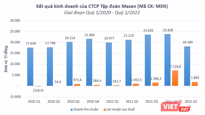 Lũy kế 3 tháng đầu năm 2022, Masan ghi nhận doanh thu thuần hợp nhất đạt 18.189 tỉ đồng, giảm 8,9% so với cùng kỳ năm trước, chủ yếu do ngừng hợp nhất mảng thức ăn chăn nuôi.