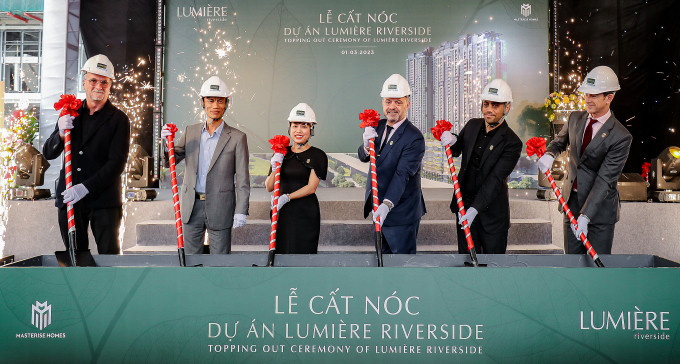 Các đại diện tiến hành nghi lễ cất nóc. Ảnh: Masterise Homes