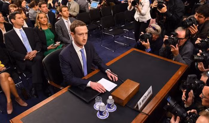 Mark Zuckerberg ra điều trần trước quốc hội Mỹ hồi tháng 4/2018.
