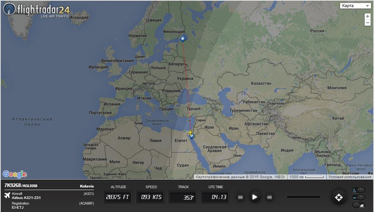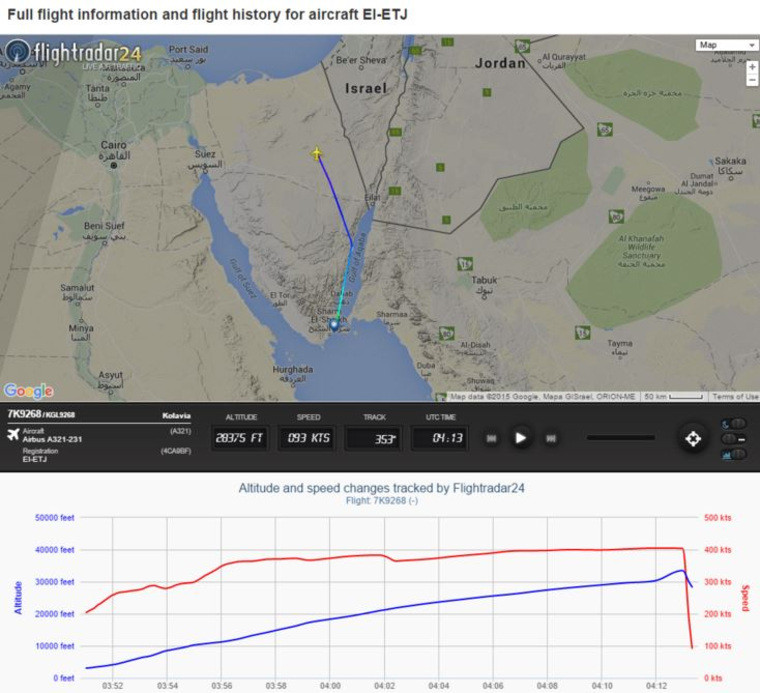 Theo tin từ Ria Novosti, máy bay Airbus-321 thuộc công ty hàng không Nga "Kogalymavia", thực hiện chuyến bay số 9268 Sharm el-Sheikh - Saint Petersburg, đã bay từ Ai Cập đến 6.21 (MSK) và biến mất khỏi màn hình radar sau 23 phút trên máy bay có 217 hành khách và bảy nhân viên phi hành đoàn.