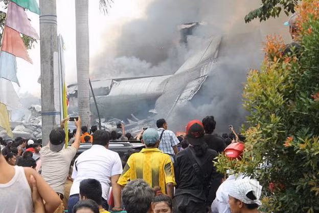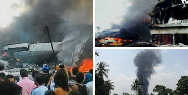 Theo RT, máy bay gặp nạn là máy bay quân sự, nó rơi trúng một khách sạn ở TP Medan, đảo Sumatra. Truyền thông địa phương dẫn nguồn tin một quan chức Không lực Indonesia cho biết trên máy bay khi đó có 12 thành viên phi hành đoàn, còn số người đi cùng thì chưa rõ.