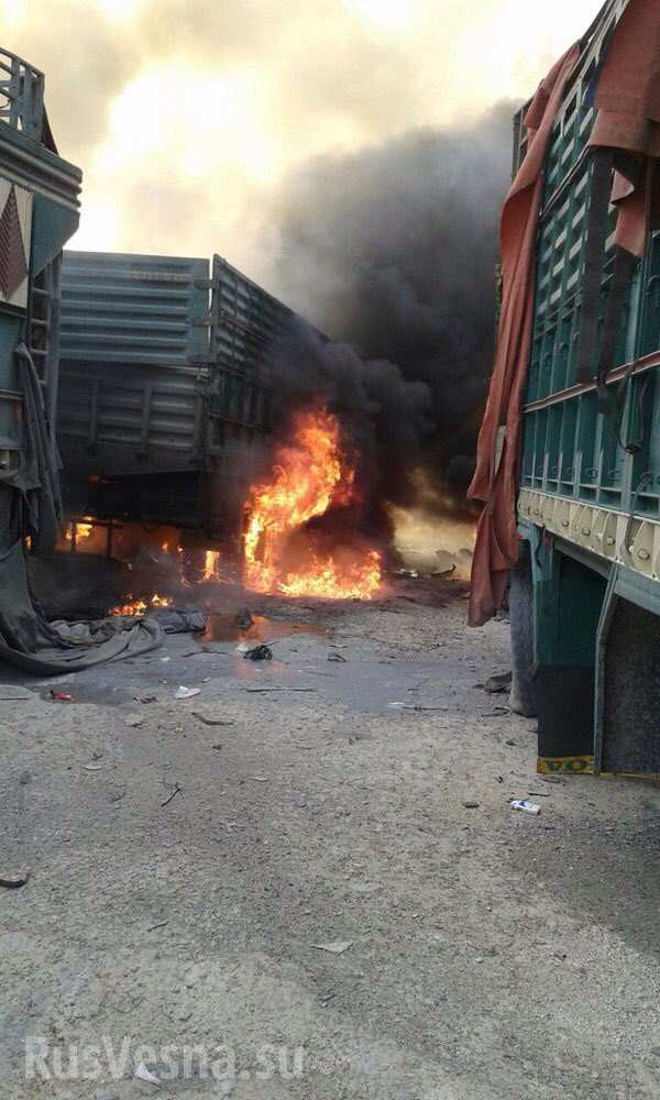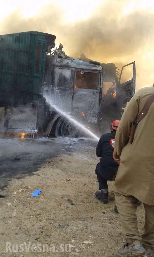 “Đoàn chúng tôi đã hỗ trợ dập lửa. Các xe vận tải này không phải của chúng tôi. Cũng không có thông tin về việc máy bay của ai đã ném bom đoàn xe” - thành viên của tổ chức Quỹ Viện trợ Nhân đạo (IHH) Thổ Nhĩ Kỳ Mustafa Uzbek cho biết.