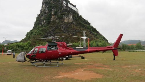 Đây là một chiếc trực thăng chuyên dụng loại nhỏ, được gắn 6 camera trước mũi và một bàn điều khiển ghi hình ngay trong khoang máy bay. Một nhân viên trong đoàn làm phim cho biết: Chiếc máy bay trực thăng này được tháo rời các bộ phận để máy bay vận tải đưa từ Mỹ sang sân bay Nội Bài. Từ đây, được xe container chở về sân bay Gia Lâm, các chuyên gia Việt Nam lắp ráp, bay thử trước khi phi công người Mỹ điều khiển bay vào Quảng Bình. Rất có thể, đoàn làm phim sẽ rời Quảng Bình theo lịch trình, nhưng một nhóm phải ở lại để thực hiện các đại cảnh từ chiếc trực thăng này.