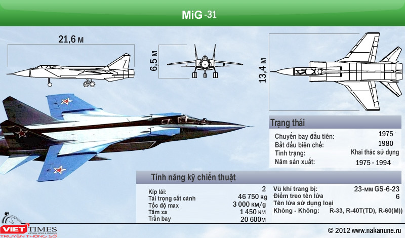Khoảng 500 chiếc MiG-31 đã được chế tạo, gần 370 chiếc đang tiếp tục hoạt động trong không quân Nga, 30 chiếc phục vụ trong không quân Kazakhstan. Một chương trình nâng cấp được thực hiện trong các phi đội MiG-31, như phiên bản MiG-31BM đa năng với hệ thống điện tử cải tiến, radar đa chế độ mới, hệ thống cần điều khiển kiểu phương Tây (HOTAS) mới, màn hình màu tinh thể lỏng (LCD) hiển thị đa chức năng (MFDs), khả năng mang tên lửa AA-12 'Adder' và nhiều loại tên lửa không đối đất (AGM) của Nga như tên lửa chống radar (ARM) AS-17 "Krypton", máy tính trên thân mới có khả năng xử lý mạnh liên kết dữ liệu. Máy bay có khả năng mang tên lửa tầm xa Vympel R-77.