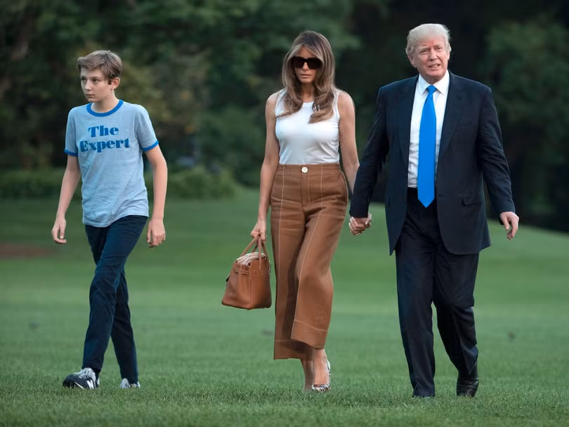 Con trai của họ, Barron sinh năm 2006. Hai vợ chồng quyết định chỉ thuê giúp việc để giúp nấu ăn và làm việc nhà thay vì thuê người trông trẻ. Melania thường giúp con trai làm bài tập và đưa đứa trẻ đi tập thể thao. Ảnh: Chris Pizzello/Reuters.