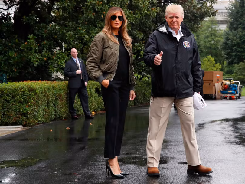 Melania gặp một vấn đề về thời trang khác vào tháng 8 khi bà đi một đôi giày cao gót tới vùng bị ảnh hưởng của bão Harvey (và đã thay bộ quần áo thích hợp hơn khi ở trên máy bay). Ảnh: Jacquelyn Martin.