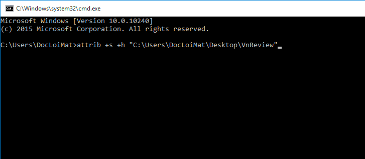 attrib +s +h "C:\Users\Tên_Người_Dùng\Desktop\VnReview"