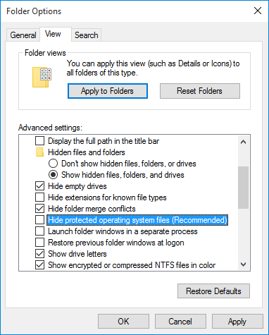 Mặc định, Windows luôn ẩn các file hệ thống khỏi người dùng cuối (end user). Microsoft làm như vậy để hạn chế việc người dùng không vô tình xóa các file hệ thống quan trọng, cần thiết cho các hoạt động của Windows. Những file dạng này hoàn toàn không hiển thị trên File Explorer. Để xem chúng, bạn phải vô hiệu hóa tùy chọn Hide protected operating system files. Đây không phải là việc không thể, nhưng nó cần người dùng có một ít kiến thức và họ cần thực hiện qua nhiều thao tác hơn.