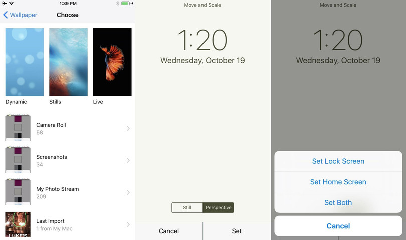 Bây giờ tất cả những việc bạn cần làm chỉ là mở trình đơn Wallpaper từ màn hình Settings chính của thiết bị. Tiếp theo, bạn chọn tuỳ chọn Camera Roll, và chọn ảnh đã lưu từ danh sách. Sau đó, bạn chỉ cần chọn Set, và chọn Set Home Screen (hoặc chọn Set Both nếu bạn cũng muốn nó xuất hiện trên màn hình khoá).