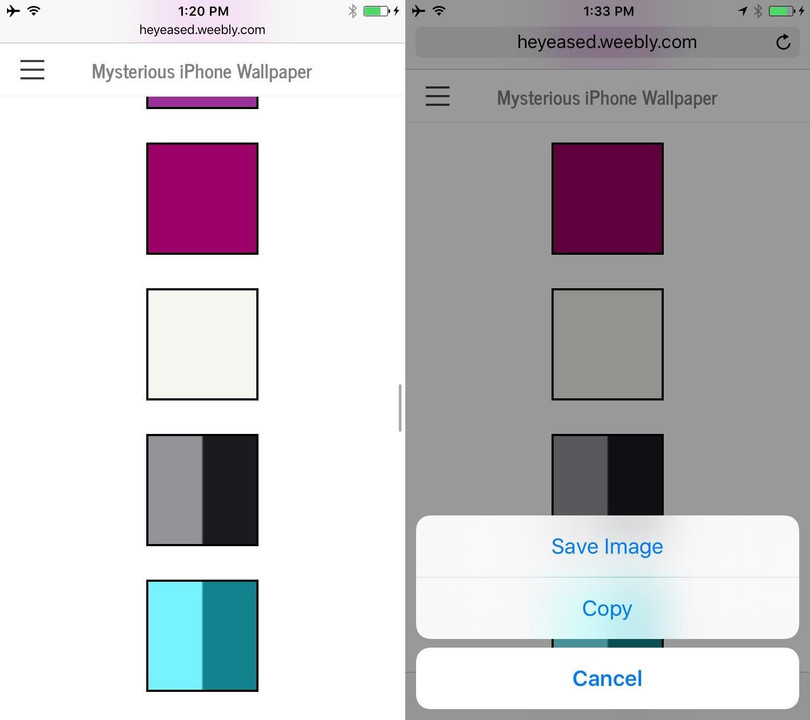 Truy cập vào trang web tại địa chỉ này trên thiết bị chạy iOS 10 bất kỳ. Cuộn xuống một chút, bạn sẽ thấy 52 hình vuông với đủ các màu sắc khác nhau. Cho dù bạn chọn màu nào, nó cũng sẽ phủ hết nền điện thoại của bạn, do vậy hãy sáng suốt lựa chọn. Chúng tôi chọn màu trắng nhạt (off-white) vì nó tương phản rất tốt với màu đen.