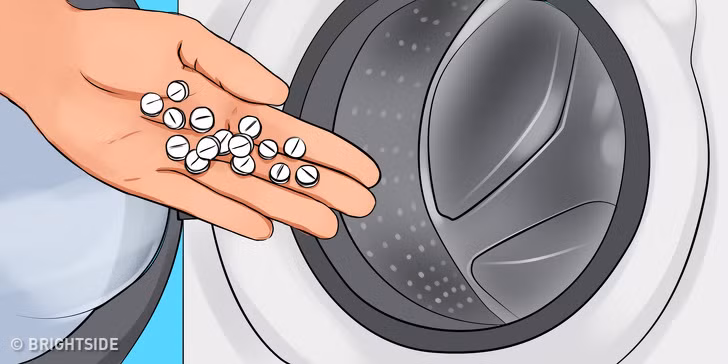 3. Cho một số viên thuốc aspirin vào máy giặt có thể làm sạch những vết ố vàng trên quần áo trắng