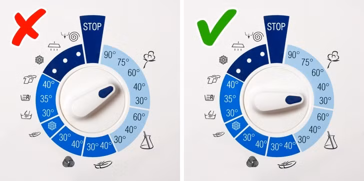 – Nhiệt độ không nên cao hơn 30 độ C hoặc quần áo có màu sắc khác nhau sẽ gây loang màu với áo trắng.