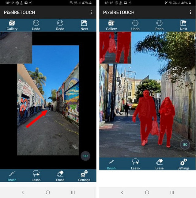 Sau khi chọn xong đối tượng hoặc chi tiết cần xóa, nhấn vào nút “Go”, ứng dụng sẽ lập tức xử lý và xóa đi chi tiết mà bạn đã chọn trên ảnh.