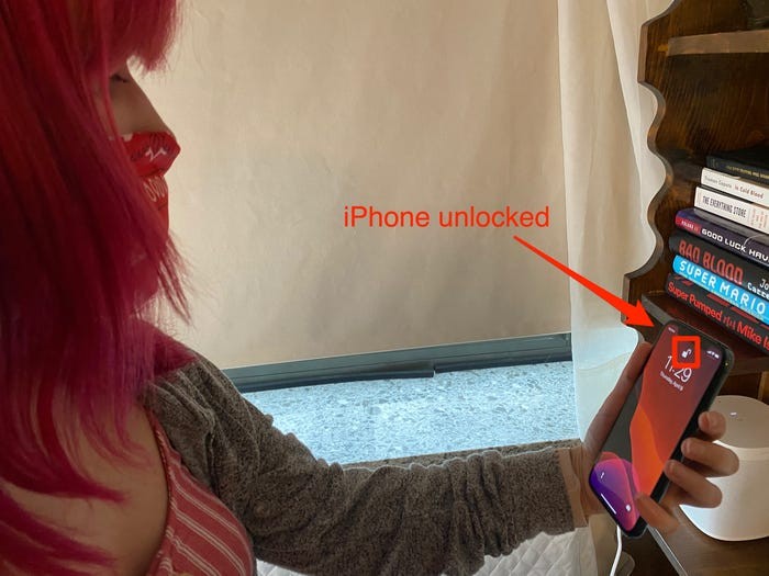 Đeo thử khẩu trang đầy đủ và thử mở khóa iPhone của bạn. Phóng viên của Business Insider đã nhiều lần mở được khóa iPhone khi đeo khẩu trang, với điều kiện cầm iPhone với một góc như trên hình.